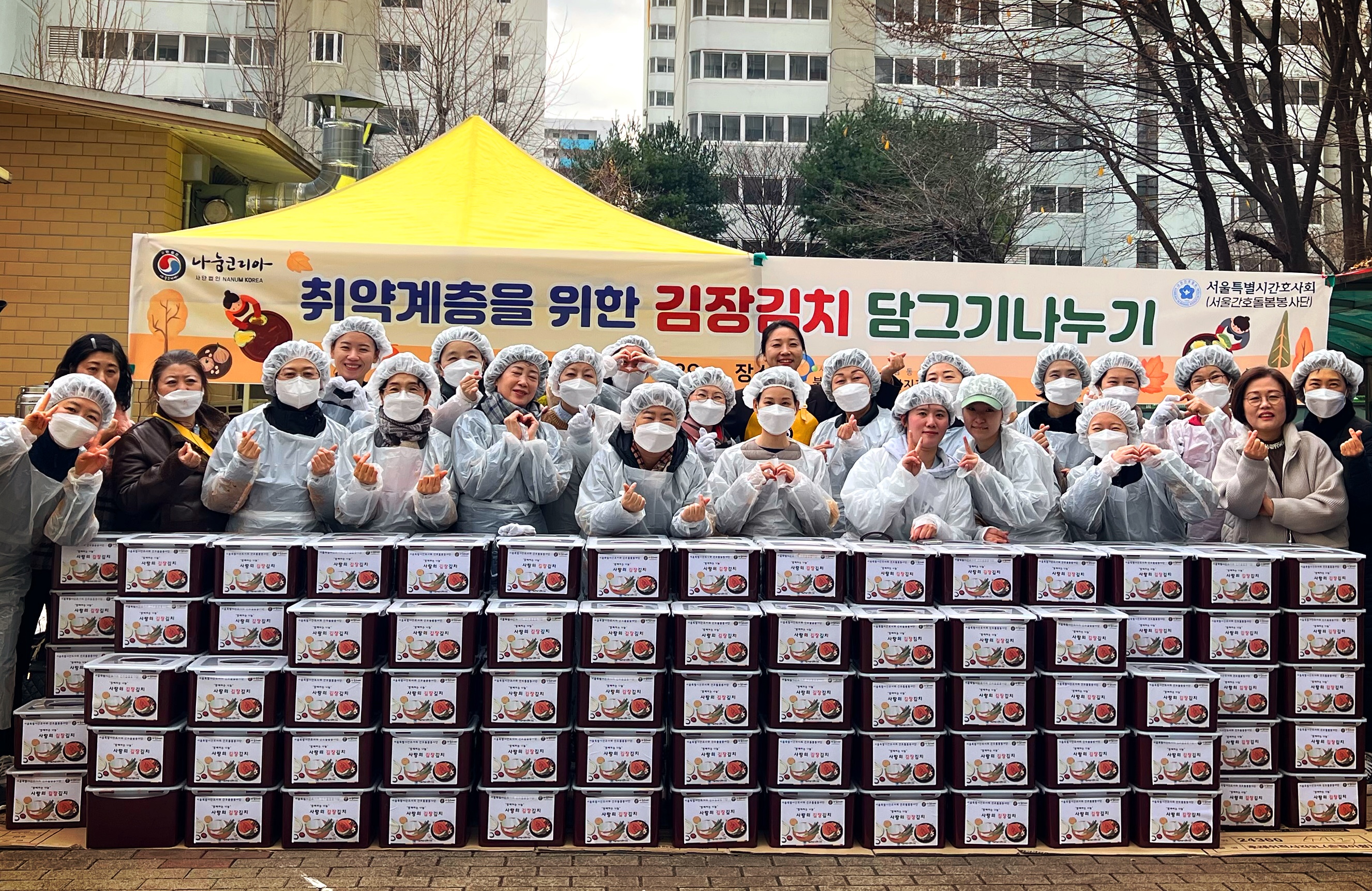 서울특별시간호사회(회장: 박정선)는 지난 11월 29일(토), 강북구 번동 일대에서 추운 겨울을 앞두고 따뜻한 마음을 전하는 ‘함께하는 김장 나눔 봉사활동’을 실시했다. 이번 봉사활동은 지역사회 취약계층의 겨울 대비를 돕기 위해 마련된 것으로, 서울간호돌봄봉사단이 나눔코리아와 함께 김장김치를 담그고 전달했다. 특히 이번 활동에서는 재정자립도가 최하위인 강북구 번동 영구임대아파트의 취약계층에게 김장김치를 전달하며 따뜻한 온정을 전했다. 올해 김장 나눔 활동은 북서울종합사회복지관과의 협력 속에 진행되었으며, 서울간호돌봄봉사단은 현장에서 김장 담그기와 포장 작업에 참여했다. 봉사자들은 정성껏 버무린 김장김치를 대상 가구에 전달하며 온정을 나눴고, 활동 내내 서로를 격려하며 즐겁게 협력했다. 현장에서는 웃음과 화기애애한 분위기가 이어졌으며, 봉사단원들은 전달될 김장김치가 안전하고 위생적으로 준비될 수 있도록 꼼꼼히 확인했다. 다양한 현장에서 근무하는 간호돌봄봉사단원 간호사들이 함께 참여해 의미 있는 나눔 활동을 이어갔다. 한 봉사자는“여러 곳에서 일하는 간호사 선생님들과 함께 봉사하며 이야기를 나누다 보니 오히려 제가 힐링하고 갑니다. 덕분에 행복했습니다”라고 소감을 전했다. 또 다른 봉사자는 “꼭 필요하고 의미 있는 활동이었고, 앞으로도 지속적으로 참석하고 싶습니다”라고 전했다. 서울간호돌봄봉사단은 매년 연탄 나눔, 김장 나눔 등 다양한 사회공헌 활동을 이어오며 지역사회 복지 향상에 기여하고 있다. 봉사단은 앞으로도 어려운 이웃을 위한 활동을 지속적으로 전개하며, 참여자들은 이를 통해 사회적 책임과 연대의 의미를 체험하고 봉사의 가치를 되새길 수 있었다. 이번 활동은 지역사회와 봉사자가 함께 따뜻한 겨울을 준비하는 뜻깊은 자리로 마무리되었다.