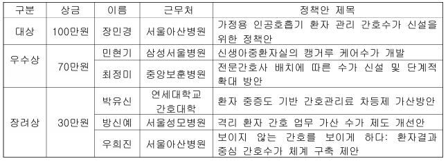 서울특별시간호사회 「2025년 간호정책제안 공모전」 수상자 결과 안내