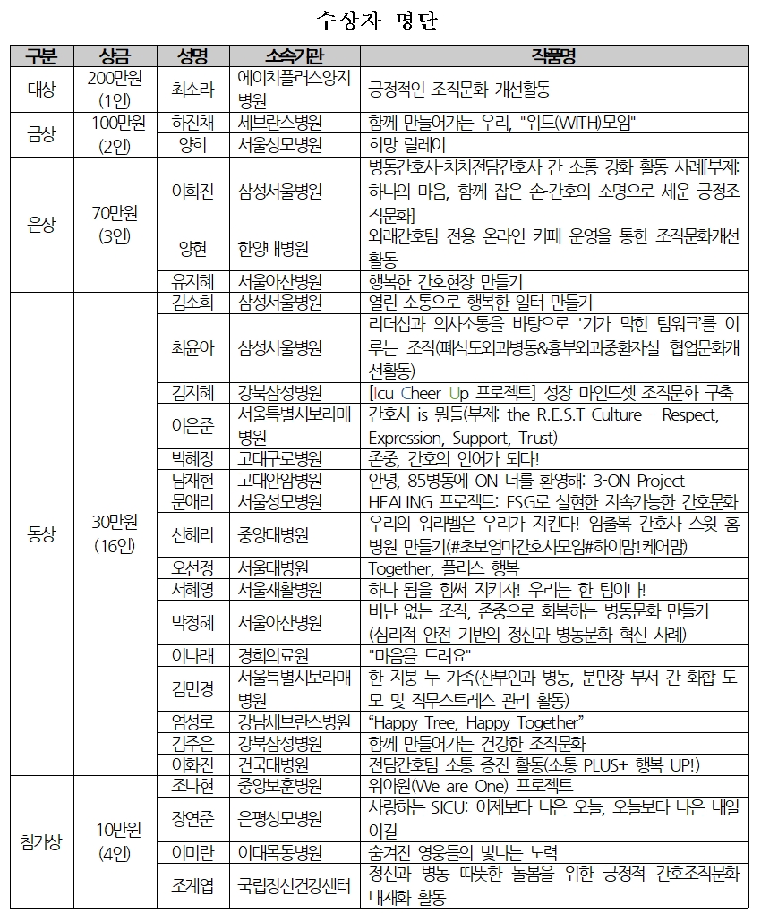 2025년 조직문화개선 활동 공모전 수상자 선정 결과
