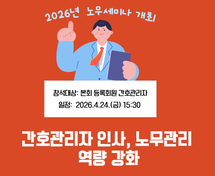 서울특별시간호사회에서  2026년  노무세미나를 다음과 같이 개최하오니 많은 관심과 참여 바랍니다.