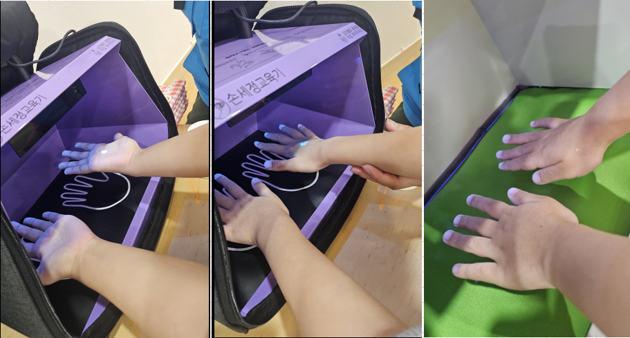 이번 교육은 아이들의 눈높이에 맞춘 동영상을 통해 손씻기가 필요한 상황을 알리고, 올바른 손씻기 6단계 방법을 동작으로 따라 배우는 방식으로 진행됐다. 이어서 퀴즈를 통해 학습 내용을 확인하며 재미있게 복습하는 시간을 가졌으며, 손위생 교육기기를 활용한 실습을 통해 자신이 손을 얼마나 꼼꼼히 씻었는지 시각적으로 확인할 수 있도록 했다.