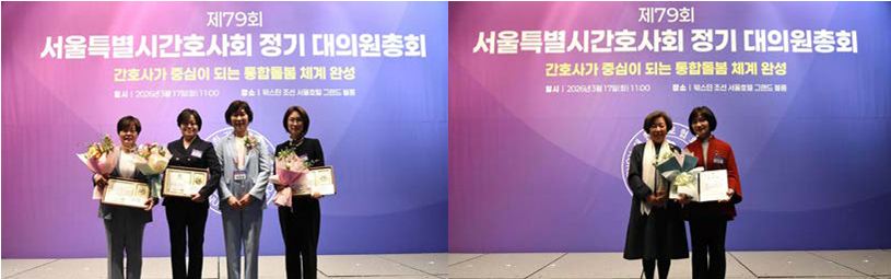 서울특별시간호사회는 지난 3월 17일 서울 중구 웨스틴 조선 호텔에서 열린 ‘제79회 정기 대의원총회’에서 2026년 수상자들에 대한 시상식을 진행했다.