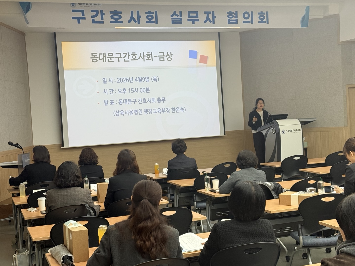 서울특별시간호사회는 2026년 4월 9일(목) 본회 강당에서 ‘2026년 구간호사회 실무자 협의회’를 개최하였다. 이번 협의회는 서울시 25개 구간호사회 실무자를 대상으로 사업 전반에 대한 이해를 높이고 실무 역량 강화를 위해 마련되었다.
