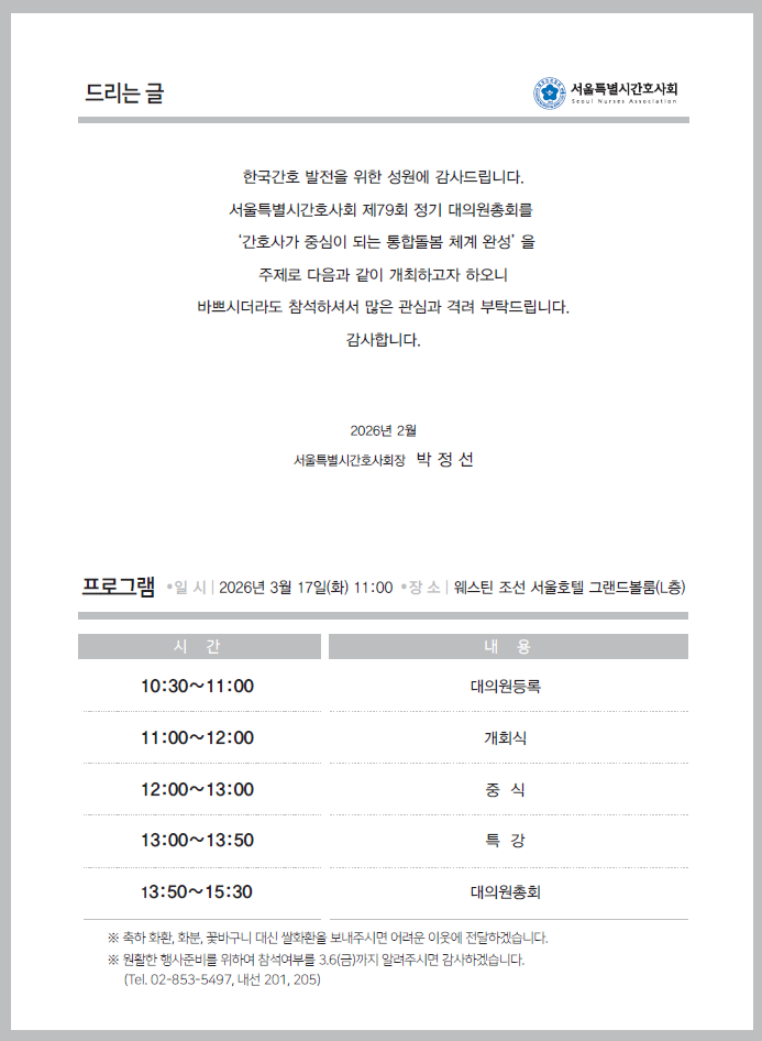 [서울특별시간호사회] 2026년 제79회 정기 대의원총회 개최 알림